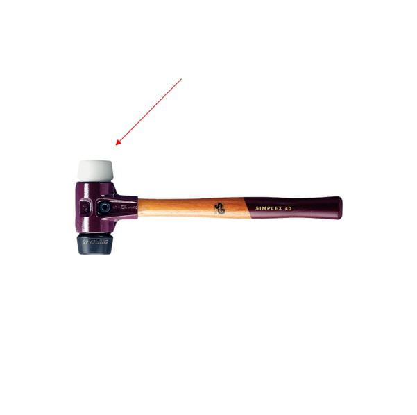 Deze witte kunststof-inzet bestaat uit een zeer zuiver materiaal. In vergelijking met spuitgegoten plastic inzetstukken is hij daardoor wezenlijk slijtvaster. De witte super plastic dop is eenvoudig te monteren/vervangen op de Halder Simplex hamer Ø 60.