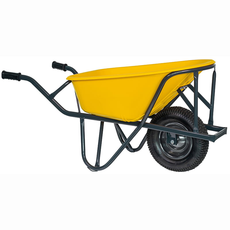 De ergonomische handgrepen zorgen voor een comfortabele werkhouding en maken het mogelijk om efficiënt te werken, ook bij langdurig gebruik. Door de combinatie van een lichte HDPE bak en een sterk frame is deze kruiwagen zowel duurzaam als onderhoudsarm.